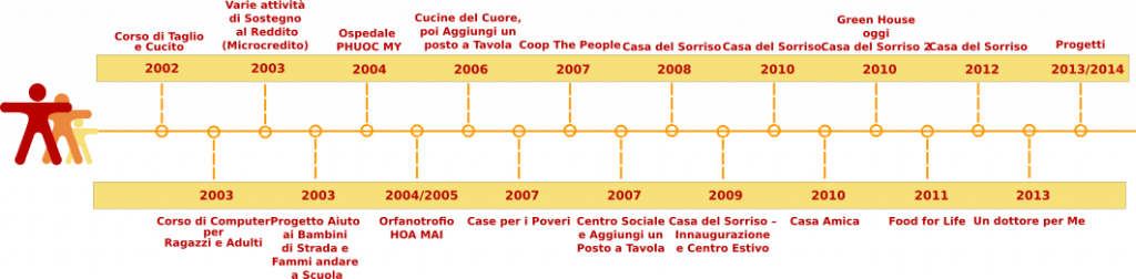 L’Associazione viene creata dal Presidente e Fondatore Enzo Falcone insieme ad alcuni amici, con lo scopo di operare in ambito socio sanitario e assistenziale e in particolare sviluppare progetti rivolti a bambini e donne e famiglie disagiate che si trovano in condizioni di povertà estrema in Vietnam.